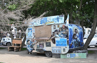 Durch leere Strassen und blühende Parks wandere ich zur Busstation, wo ich mein Busbillet abholen kann. Am Morgen um 9 Uhr sin noch wenige Leute unterwegs, obwohl ich hier mitten im Zentrum von Buenos Aires bin. Etwa um 10 Uhr kann dann meine Stadtrundfahrt im Hop On - Hopp Off Bus losgehen. Kreuz und Quer geht's durch die Metropole. Der Kopfhörer für die Erklärungen funktioniert nicht richtig. Erst als ich mehrmals den Platz gewechselt habe, klapp's einigermassen. Die Texte kommen aber meis an den falschen Stellen oder sind doppelt oder werden mitten im Satz abgebrochen. Gut habe ich Google Maps und so meiss ich trotzdem wo ich so unterwegs bin. Die Stadt finde ich nicht all zu sehenswert, aber es hat einige schöne Parks und so steige ich aus und gehe zu Fuss weiter.